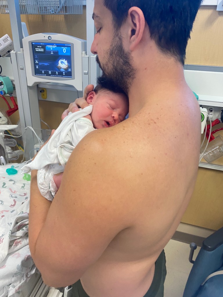 “He’s here, all of him,” a nurse says as I’m handed my baby. 5 pounds and 10 ounces of pure joy. I put him on my bare chest. Stephen and I are staring at each other and staring at him, in instant awe of this little life now before us. Everything they tell you is true. The love? Immediate and unconditional. The pain? Entirely forgotten. The strength of female body? Incredible and unmatched.
