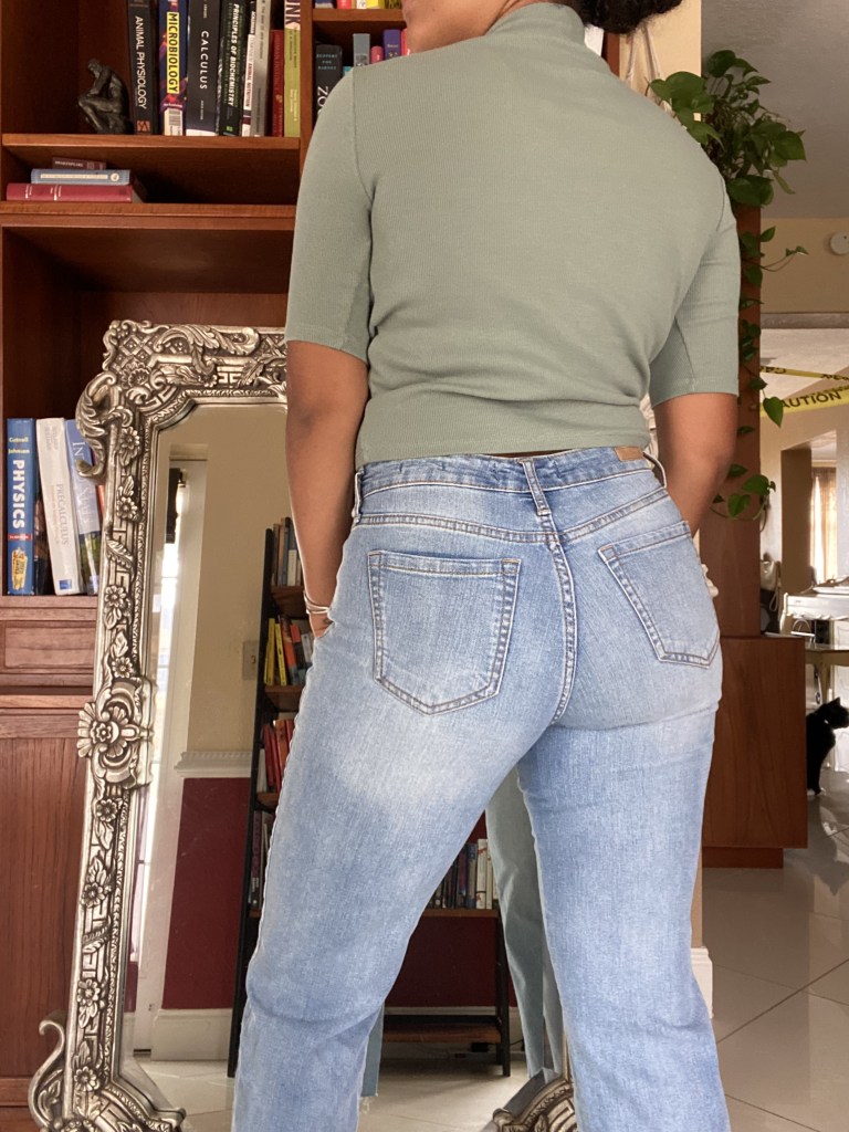 There is nothing like finding a pair of jeans with a perfect fit, especially when you’re thrifting! I’m obsessed with the cut of these too. I found this cute, moss green shirt that has a faux little turtle neck to pair with it. A perfect Florida fall outfit.